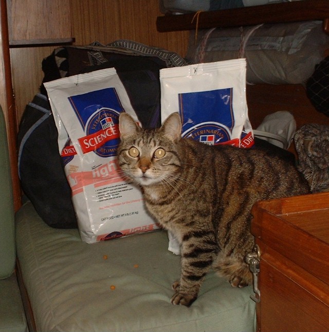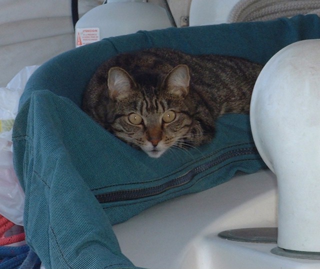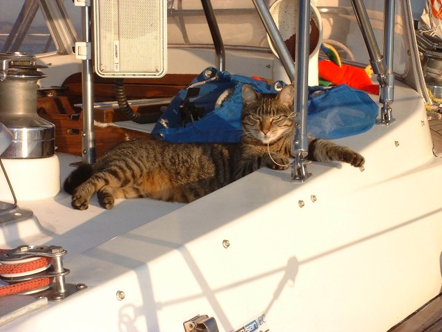 Well, life isn't so bad, is it? We've had a few wild rides, some wet cushions and a lot of fish, so on the average, I've done OK. The big guy and the skinny lady have now been pretty well-trained, and I don't have to meow at them too often anymore. Take a look at some of these recent photos and see if you think you might enjoy the cruising life. (By the way, my crew boy said if he is re-incarnated, he'd like to come back as a cruising kitty. That just goes to show you how little he understands about how tough this life is for me.)