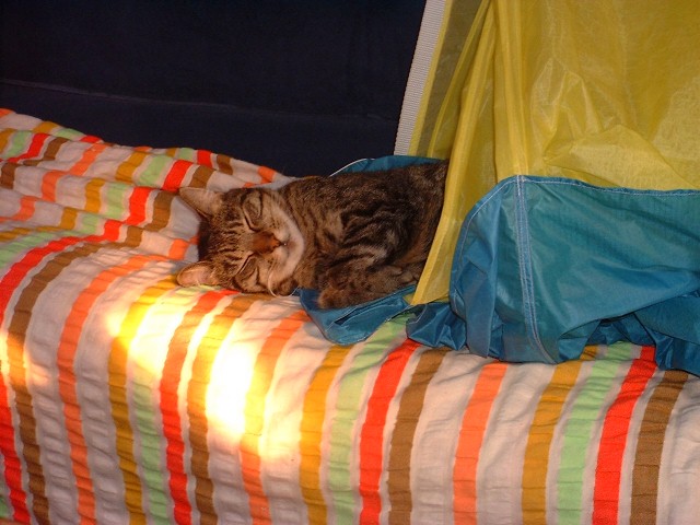 These late-night sessions sneaking onto the computer to do my web page really take their toll. I make it through by munching on Kitty Treats and licking my paws to prevent catpaw tunnel syndrome, but exhaustion eventually overtakes me. I apologize to those of you who have been waiting so long for an update, but I hope you understand that typing can be a real challenge with these dumb humanoid keyboard designs. And these laptops are no fun: there is no mouse!