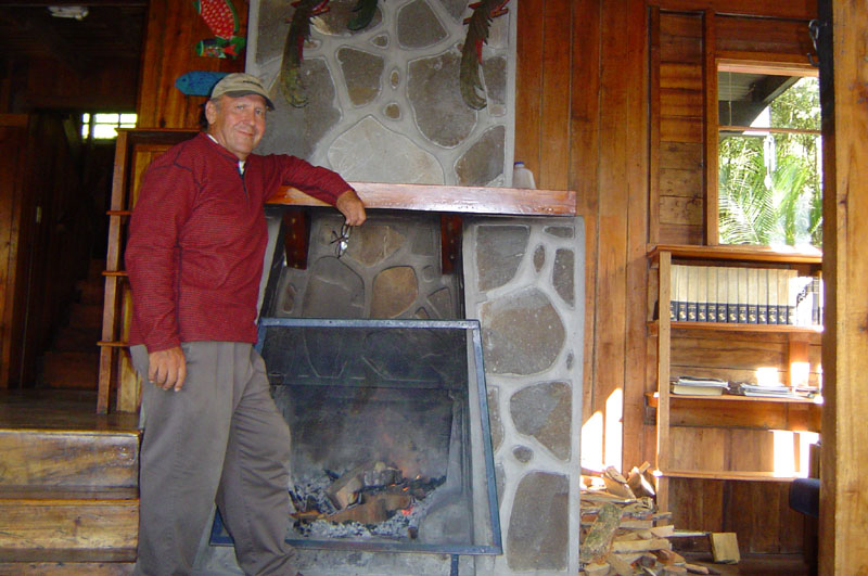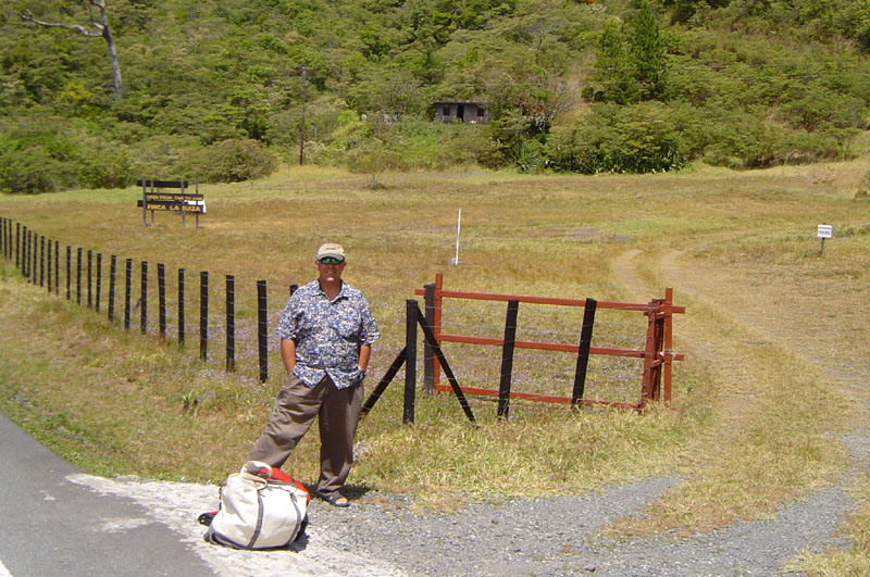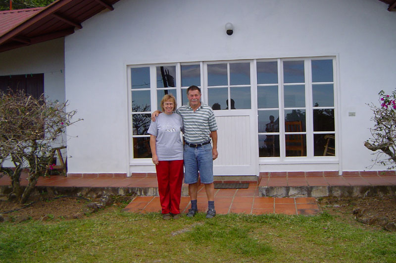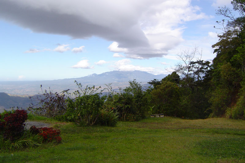 We should not have been surprised that the bus driver knew exactly where to drop us off, in spite of the fact that it seemed to be in the middle of nowhere. (Well, by our standards, it was.) In the photo above, Les is standing at the drop-off point, obviously thinking "Now what have you gotten me into?" We were anticipating "a pleasant hike uphill to the lodge", as the Swiss owner described it. Even though we packed light, we were huffing and puffing after about 20 minutes and discovered the cell phone worked, so called for a MediVac (actually, just calling Rebecca to wish her Happy Birthday!) Luckily, a Panamanian worker came down to store our packs in a shed and let us enjoy the rest of the climb with relative ease. The hike was well worth it--from 4500 feet above sea level, views of Volcan Baru and the south coast of Panama and the Pacific Ocean were spectacular, and we looked forward to two days of rest and relaxation.