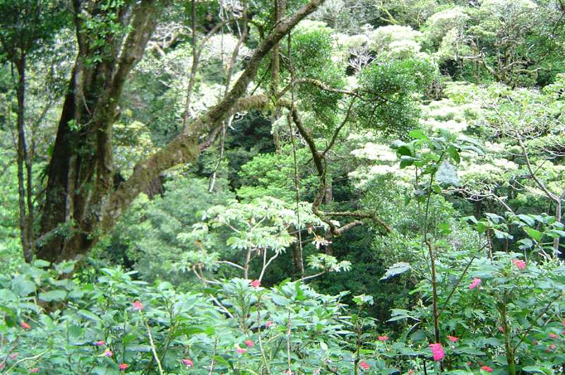 The Los Quetzales lodge was on the west side of Vulcan Baru and boasted of rustic cabins in a natural setting with quetzal sightings reported on a regular basis. Now we're talking! When we arrived at the lodge, it looked fairly civilized, but hardly in a pristine forest setting conducive to tropical birds. "Of course not", they answered. "The cabins are up in the hills, very different setting; quetzals love it there."