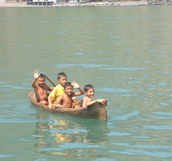 After spending three days with family friend Elena in her town of Cara Sucia (see below), we convinced her to bring her three delightful children to this elegant resort to share a bit of the good life with us. They were excited to visit our sailboat, but the pool and other facilities at Barillas Marina put everybody in a "Hollywood" mood.