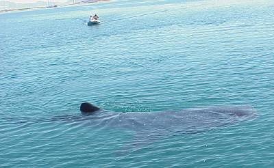 Gemini and other cruising friends were lucky enough to see these creatures in Bahia de Los Angeles in the northern half of Baja, Mexico. We even swam with them, if you can imagine that!