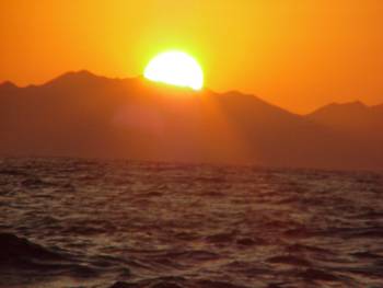 After the "repair", we headed north toward La Paz. Attempt #1 on Dec. 4 failed, as we did not yet understand that "Santa Anna winds in Southern California" led inevitably to "Northerlies blowing in the Sea of Cortez". As a result, we were faced with head-on winds after 6 hours of sailing, and turned back to Cabo to lick our wounds and try again. Thanks to harbormaster Tim's advice, we waited for a high pressure system in the "Four Corners" area to disappear, and raced for La Paz in perfect conditions. (Well, almost perfect--our Alpha autopilot control panel in the cockpit died...another project lurking behind the scenes?) Into the Sea of Cortez we went, enjoying the mild winds and the last morsel of Dorado in fish tacos--yum! |