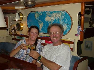 Emeryville buddy Rod shares laughs with Les aboard Gemini and Fourth of July in La Paz is always special with good friends like