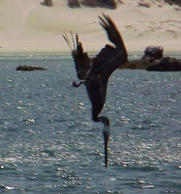 Heading north, this time we can take advantage of the Corumuels and sail with the wind behind us. Caught 4 fish (released 3), all with the green/yellow/orange "Rapala" lure, which we've now nicknamed "killer". Visited with Emeryville's Michael & Desiree on Amante and enjoyed one of the most idyllic anchorages we've ever seen. Increasingly amazed at pelicans diving head-first into the water, we spend about an hour each day wondering at their perseverance. Les explained that pelicans rarely die of old age...the majority get cataracts and concussions! There is one photo below, but for the full impact, take a peek at a series of pelican shots! |