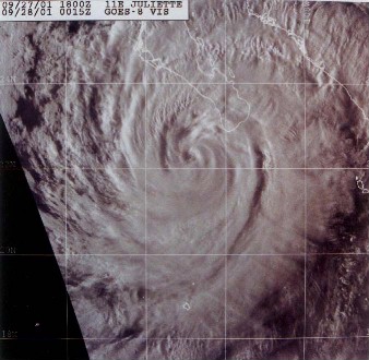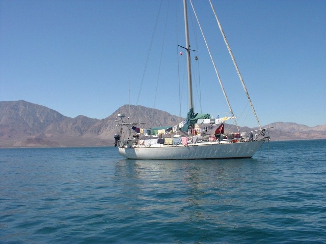 Hurricane Juliette diminished to a "tropical depression" before crossing over the Baja and sneaking up on everyone. The anchorage named "Don Juan" near Bahia de Los Angeles is a "hurricane hole", meaning a well-protected place to hide from these sobering storms. Fifteen boats huddled in that area for four days, thankful that it was only a "tropical depression" when it passed 50 miles away from us.